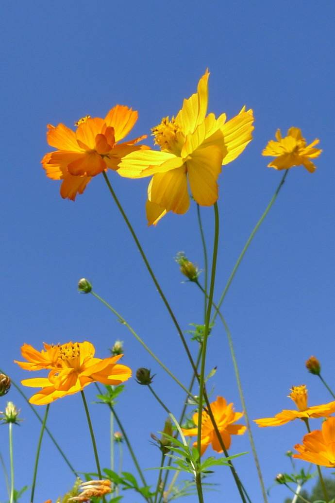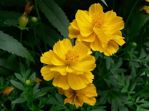 生活習性:硫華菊喜陽光充足,不耐寒。多分枝,葉為對生的二回羽狀復葉,深裂,裂片呈披針形,有短尖,葉緣粗糙,與大波斯菊相比葉片更寬。春播花期6-8月,夏播花期9-10月。