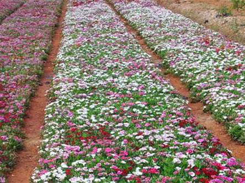 石竹株型低矮,莖稈似竹,葉叢青翠,自然花期5-9月,從暮春季節可開至仲秋,溫室盆栽可以花開四季?;斏Χ耍瑔紊虺蓪?,也有呈圓錐狀聚傘花序,花徑不大,僅2至3厘米,但花朵繁茂,此起彼伏,觀賞期較長?;ㄉ邪?、粉、紅、粉紅、大紅、紫、淡紫、黃、藍等,五彩繽紛,變化萬端。園林中可用于花壇、花境、花臺或盆栽,也可用于巖石園和草坪邊緣點綴。大面積成片栽植時可作景觀地被材料,另外石竹有吸收二氧化硫和氯氣的本領,凡有毒氣的地方可以多種。切花觀賞亦佳。